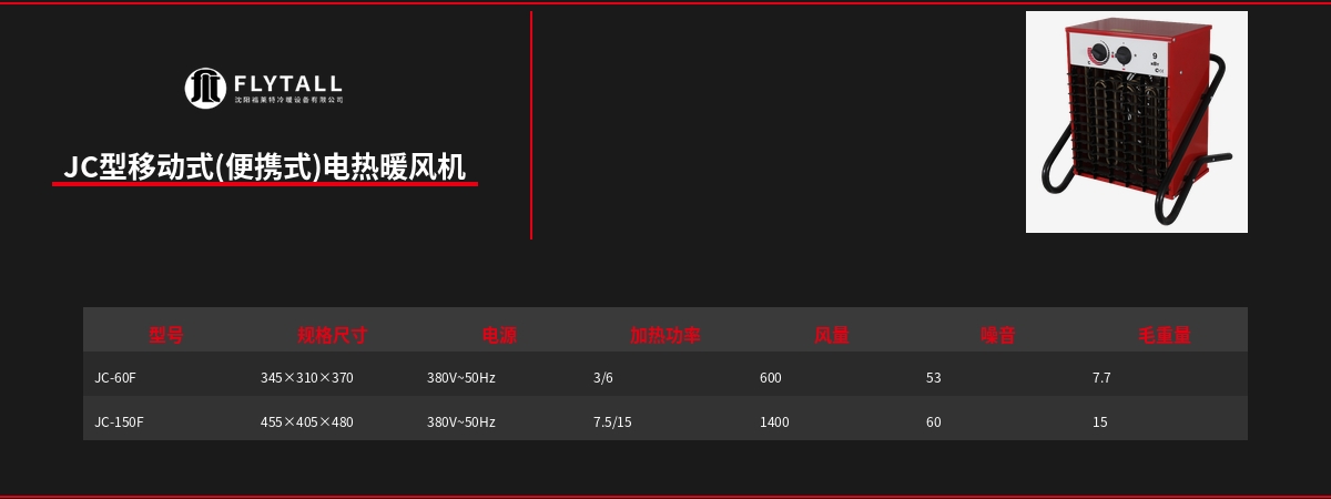 JC型移动式(便携式)电热暖风机采用便携式设计,移动灵活,适用于临时作业场所、设备维修、建筑施工等需要局部供暖的场景。产品以电能或燃油为热源,加热快速,可在短时间内提升局部空间温度。核心功能是提供灵活便捷的供暖解决方案,解决固定供暖无法覆盖的临时性、移动性供暖需求。用户价值在于显著改善临时作业环境舒适度、保障特殊工况下的正常工作条件、降低固定供暖设施投资。市场受临时工程建设与应急救援需求驱动,移动式暖风机作为灵活供暖设备应用广泛。