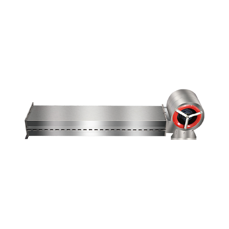 冷库侧吹空气幕(单电机)专为冷库门洞侧装设计,采用离心式风机与侧吹结构,在冷库门口形成横向高速气流屏障,有效阻隔库内外冷热空气对流,减少冷量流失,维持库内温度稳定。产品广泛应用于食品冷冻库、医药低温仓储、冷链物流配送中心等需要频繁开关门的低温环境,特别适配门洞高度4米以上、宽度6米以内的高大空间。核心功能是通过侧吹方式产生连续均匀的气流幕墙,抵消温差导致的自然对流密度差,实现物理隔离。用户价值在于显著节能降耗(降低能耗30%-45%)、抑制门区结露结冰、维持库温波动在±0.5℃以内、防虫防尘保障卫生安全、